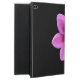 Joli coque iPad Air 2 fait en noir jet, avec une photo d'une grande fleur rose fleurie. Personnalisez le texte rose, à l'avant du coque, pour répondre à vos besoins.