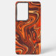Coque Samsung avec design abstrait liquide ondulé. Marbre rouge, design moderne dans un style rétro. Couleurs rouge et orange.