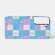 Are you looking for a music theme phone case? This phone case features a pattern of bass clef music symbols in blue, purple, pink and yellow.