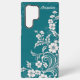 Illustration florale raffinée en blanc immaculé dressée contre un riche arrière - plan turquoise émeraude. Cet élégant design allie le défilement ornemental au charme botanique, évoquant une sensation de luxe tranquille et de style intemporel.