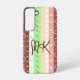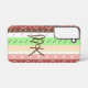 Boho étui de téléphone mignon et blanc avec pois rose, mauve, marron, bordeaux et sauge vert et motif rayures. Des couleurs chaudes et terreuses.