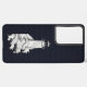 Un design appliqué moderne de couleur argent chromé de style nautique sur un fond d'impression en fibre de carbone pour une coque de téléphone raffinée.
