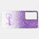 Ce design à l'ombre chic présente un arrière - plan de parties scintillant violet avec nom personnalisé et monogramme de lettre initiale. Personnalisez le coque dans les champs de texte avec un nom et une initiale, supprimez les deux ou un ou cliquez sur personnaliser pour sélectionner un style de police, une taille et une couleur que vous souhaitez.