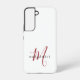 Élégant Boîtier de téléphone Monogramme Rouge Blanc Moderne. Un élégant monogramme de script rouge combiné à une police de caractères noir propre san-serif donne un look contemporain.