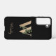 Élégant boîtier de téléphone noir dispose d'un monogramme botanique en or au centre.