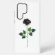 Rose noir symbolique, artistiquement dessiné avec des tiges vertes et feuilles sur arrière - plan blanc. Rose noir.
