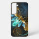 Luciole à vapeur avec ailes bleues transparentes et ampoule verte sur arrière - plan usé, marron, texturé. Style Steampunk.