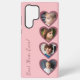 Concevez votre propre étui téléphonique avec ce joli étui modèle photo rose Galaxy S22 avec espace pour ajouter 4 photos personnalisées. Téléchargez vos photos préférées et customisez le nom avec votre personnalisation. Un grand cadeau pour maman quand vous ajoutez vos propres photos des enfants. Dispose d'une couverture rose douce avec des arrière - plans de coeur de parties scintillant sur les modèles photo du coeur. Nos modèles, mignons et personnalisables, vous permettent de concevoir votre propre couverture téléphonique en ajoutant votre personnalisation et vos photos avec des noms ou des monogrammes. Ajoutez une photo pour les boîtiers de téléphone mobile faits sur mesure qui vous représentent ou vos proches. Créez votre propre, ou utilisez nos conceptions comme point de départ. Choisissez parmi différentes marques de caoutchouc, plastique ou silicone pour adapter votre téléphone. Idéal pour les filles ou les garçons qui viennent d'avoir un téléphone et qui ont besoin de le protéger, ou pour les hommes ou les femmes qui veulent montrer leur style individuel.