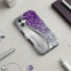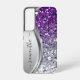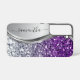 Coque Samsung Galaxy Monogramme manuscrit paillettes violettes argentée