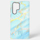 Coque Samsung Galaxy Monogramme personnalisé en marbre bleu or imprimé