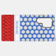 Des balles de golf créent un motif à pois lumineux sur un arrière - plan bleu sur ce boîtier téléphonique. Il y a aussi un groupe blanc avec des bandes bleues pour vous personnaliser avec un nom ou un autre texte. Un autre motif est aménagé sur le thème du golf à l'aide de clubs de golf sur un arrière - plan rouge.