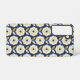 Découvrez ce design avec un motif géométrique à fleurs bleues.