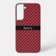 Nom personnalisé Black & Red Textured Diagonal Stripes Samsung Galaxy S22+ Coque. Personnalisez ce modèle avec votre nom.