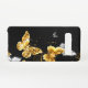Or, bijoux et papillons blancs sur arrière - plan noir. Papillon doré.