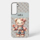 Coque Samsung Galaxy Pastel Teddy Bear Holding Flower Wear Overalls