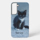 Personnalisez (ajoutez votre texte ou changez l'image) une photo de chaton Tuxedo (noir et blanc) conçue sur Zazzle Samsung Galaxy S22 Plus et plus. C'est un mignon bébé chat assis et regardant. C'est un chaton noir mais des taches blanches sur le cou, la poitrine et les orteils. Il y a aussi un coin blanc près du nez. Et les whiskys du chaton sont aussi blancs. Ses yeux gris-bleu vous regardent droit. Grand cadeau pour les enfants avec l'ajout de votre texte.