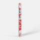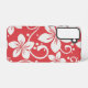 Empreinte hawaïenne tropicale avec des fleurs blanches à la plumeria et tourbillonne sur un arrière - plan rouge.