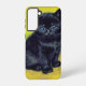 Samsung Coque Galaxy avec un chat noir dans le style de Vincent van Gogh! Cette chatte aux yeux bleus s'assied adorablement avec des fleurs violettes contre un mur vert et une table jaune. Un cadeau merveilleux pour les amoureux de les chats et les collectionneurs d'art hollandais !