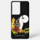 Un loup hurle à la pleine lune avec des feuilles et des glands d'automne sur fond de noir