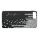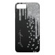 Élégant étui téléphonique fait en noir avec des graphiques d'une parties scintillant argentée à l'aspect peinture et faux diamants qui glisse, du haut du coque. Personnalisez le texte pour vous-même ou comme une idée cadeau chic pour elle.