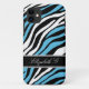 coque iPhone 5 élégant personnalisé avec votre nom, et conçu avec un motif d'impression zèbre avec des rayures zèbres en noir, blanc et bleu.