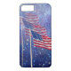 Trois drapeaux pour un Apple iPhone patriotique 7 à peine Là coque. L'arrière - plan est bleu avec des étoiles et de la brume.