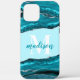 Vous aimerez ce bel Agate bleu et noir turquoise et tendance avec des veines parties scintillant argentées. Personnalisez avec votre Nom et votre Monogramme en texte blanc et turquoise.