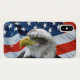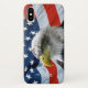 Ce Coque patriotique iPhone X a un gros plan de la photo d'un aigle chauve devant le drapeau américain et est personnalisé avec votre nom ou monogramme.