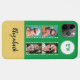 Ce coque iphone personnalisé coque-Mate vous permet d'ajouter 4 photos, initiales et un nom dans un jeu de couleurs jaune et vert. C'est une excellente façon de rendre votre téléphone unique et de présenter votre style personnel.