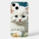 coque iphone avec un chaton dans le style Art Nouveau d'Alphonse Mucha ! Un chaton blanc et moelleux aux yeux bleus pose avec des fleurs jaunes. Un joli cadeau pour les amoureux de les chats et les collectionneurs Art Nouveau!