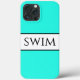 Ce design amusant présente une typographie moderne et classe de texte noir à l'intérieur d'une large bande centrale blanche brillante surlignée de rayures noires sur un arrière - plan d'aqua brillant avec du texte "SWIM" écrit à travers le design. Faites-le vous-même : la couleur de bande centrale et la couleur arrière - plan de cette conception peuvent être customisées/modifiées en modifiant la conception. Le texte peut également être personnalisé.
