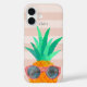 Qu'est-ce qui dit l'été plus qu'un ananas tropical lumineux ? Notre mignonne coque prêt pour l'été présente une illustration d'ananas aquarelle portant une paire de lunettes de soleil rouges, sur un arrière - plan rayé rose vif. Personnalisez avec un nom ou un monogramme si vous le souhaitez.