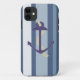 Coques Case-Mate iPhone Ancre bleue sur Arrière - plan rayé