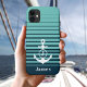 Ce boîtier téléphonique rétro d'inspiration nautique rayé dispose d'une ancre avec votre lettre monogramme. Personnalisez avec un nom. Idéal pour tous les amateurs de navigation de plaisance ou de voile.