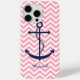 Coques Case-Mate iPhone Ancre Motif blanc bleu et rose Zigzag