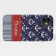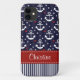 Ce motif fait sur commande d'ancre de bleu marine et de blanc avec des rayures, des coeurs et un motif de point de polka peut être personnalisé avec votre nom sur le rouge IMPRIMÉ et la conception de regard de ruban piquée par blanc. Accessoirisez votre instrument préféré avec cette conception inspirée nautique de très bon goût et élégante. Ceci fait un cadeau mignon pour les femmes, l'épouse d'un capitaine, l'ado ou n'importe quelle fille girly. © Chrissy H. Studios, LLC d'illustration. Tous droits réservés.