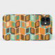 Ce boîtier téléphonique a un design moderne du milieu du siècle de rectangles arrondis penchés sur le côté avec des rectangles inclinés à l'intérieur faits de lignes toutes dans les couleurs des années 70.