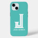 Ce monogramme minime aqua iphone 15 coque est à la fois tendance et professionnel. Il comporte votre première initiale en caractères gras et tendance et votre nom en caractères de coordination classique en blanc. C'est élégant et chic.
