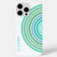 Aqua clair contemporain, turquoise, vert menthe et bleu turquoise rayures de cercle motif boîtier de téléphone portable. Avec la possibilité de customiser avec un nom, un monogramme ou des initiales de votre choix. Belle couverture moderne et cool pour le brancheur tendance et amateur d'art branché, amoureux de motifs artistiques qui veut protéger leur téléphone de la poussière et de la saleté, de l'usure et de la déchirure. Cette conception est disponible pour les coques de téléphones cellulaires Apple iPhone 6, 7 et 8 Plus, 10 ou X, XR, XS, 11, 12 et 13 Mini, 14, et 15 Plus et Pro Max. Montrez votre style, regardez à la mode, et sentez élégant avec un design unique sur un accessoire mobile de votre choix.