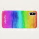 Ce boîtier de téléphone portable dynamique et gai dispose d'un motif arc-en-ciel aquarelle avec votre nom dans une simple typographie blanche Un ajout amusant à votre garde-robe de téléphone portable. Fait aussi un grand objet à célébrer PRIDE.