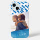 Boîtier de téléphone monogrammed personnalisé avec un motif abstrait d'aquarelle boho en bleu et blanc. Personnalisez-le avec vos initiales monographiques ou d'autres textes. Utilisez les outils de conception pour ajouter votre photo personnalisée et modifier les polices de texte et les couleurs pour créer un design unique.