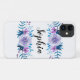 Boîtier de téléphone avec motif de courroie florale bleu et violet romantique et nom ou monogramme personnalisable.