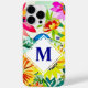 Boîtier de téléphone à fleurs à fleurs d'aquarelle rose, jaune et violet. Ajoutez l'initiale dans la zone personnalisée.