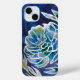 Coques Case-Mate iPhone Aquarelle florale Turquoise bleu Dahlia Navy