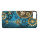 Coques Case-Mate iPhone Arrière - plan turquoise à vapeur avec engrenages