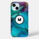 Coques Case-Mate iPhone Arrière - plans d'encre turquoise Parties scintill