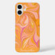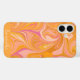 Protégez votre téléphone avec style grâce à cette oeuvre en marbre abstrait colorée en jaune, orange et rose vif, personnalisée avec votre nom.