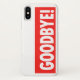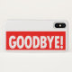 AU REVOIR ! est inspiré par une célébrité tenant un cas semblable de téléphone quand elle se protégeait des paparazzi ! C'est un cas drôle qui comporte un arrière - plan blanc avec une police rouge de caractère sans obit et sans empattement d'étiquette et de blanc. Envoyez un grand message aux personnes que vous ne voulez pas parler à plus ou vos haineux ! AU REVOIR !