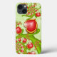 Coeurs rouges uniques et formes vertes art fractal, coloré et décoratif. Design romantique pour votre cool inhabituel iPhone 13 coque et plus.