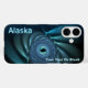Une image fractale aux tons bleus ressemblant à un groupe tourbillonnant de baleines sous la glace polaire; peut-être des bélugas ou des rorquals de vison qui fréquentent les mâts. Le texte "Alaska" apparaît également en bleu et blanc brillant. Customisez en ajoutant votre propre texte supplémentaire.